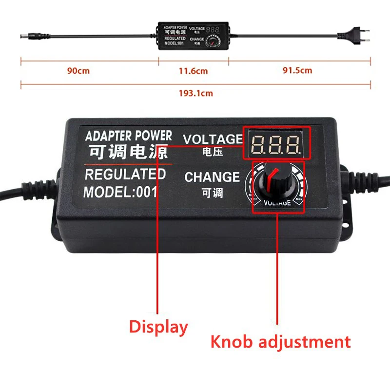 Alimentatore Regolabile a Potenza Variabile, progettato per garantire un’erogazione stabile e precisa di corrente continua in una vasta gamma di applicazioni elettroniche. Grazie al suo ingresso universale AC 100–240V 50/60Hz, il dispositivo può essere utilizzato in diversi contesti operativi senza necessità di adattatori aggiuntivi, assicurando massima compatibilità a livello internazionale.